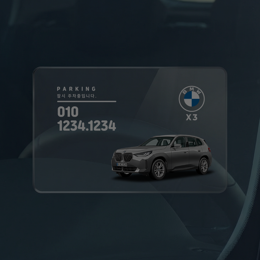 본 제품은 차량 전면 유리에 동봉된 투명 스티커로 부착하는 차량용 주차번호 안내판입니다.